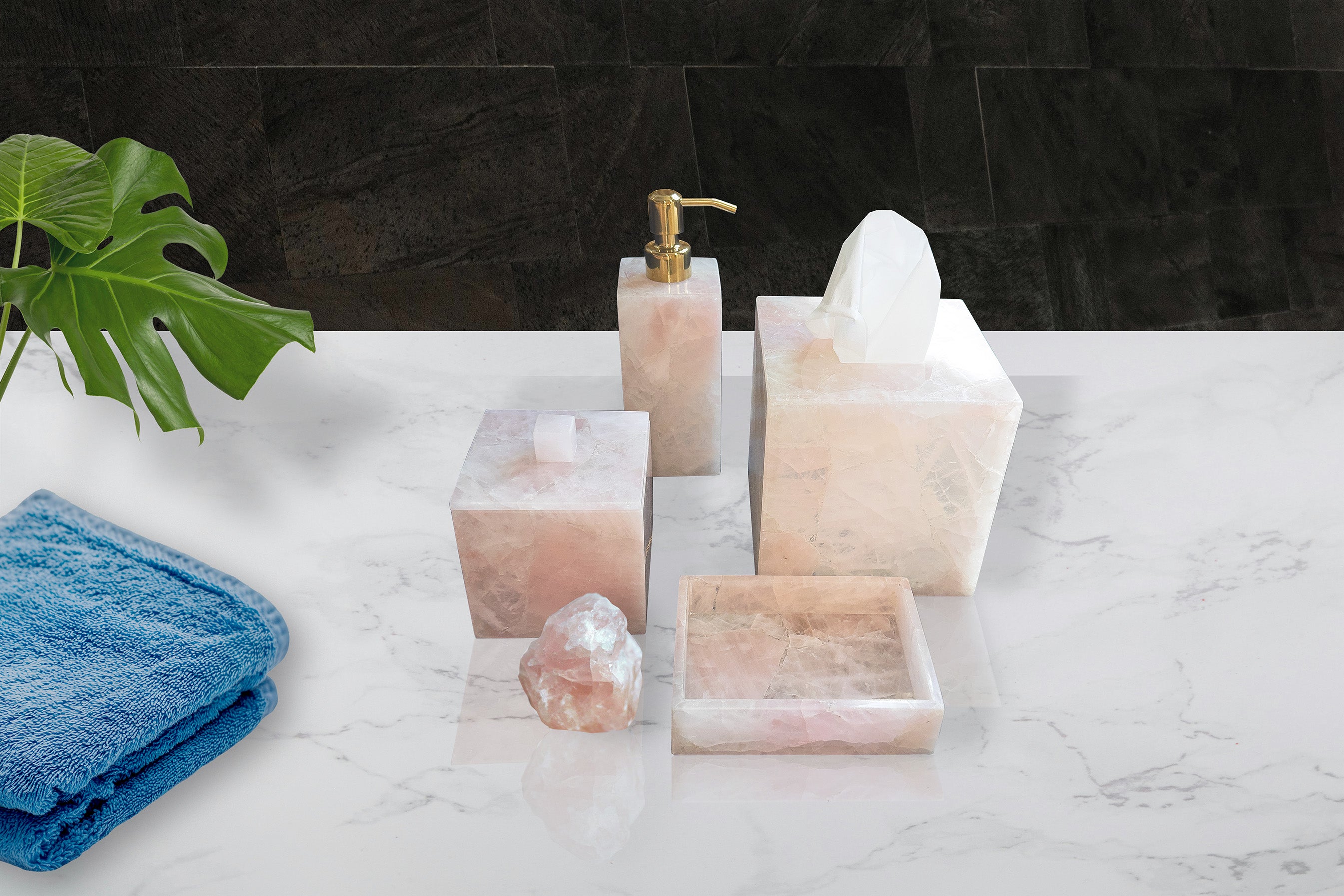 Semi-Precious Bath and Home Accessories: Hand-Cut, Fabricated, and Highly Polished.