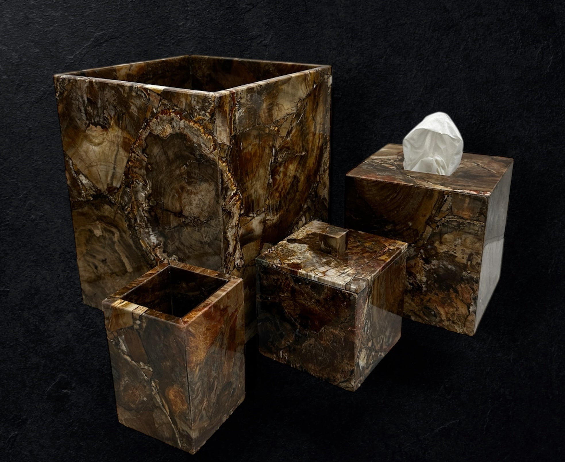 Semi-Precious Bath and Home Accessories: Hand-Cut, Fabricated, and Highly Polished.